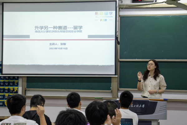 计算机专业方向作为目前工科留学的热门专业,海外名校的申请要求也在逐年变化,为帮助有出国留学、交流意向的同学们更加了解相关资讯与要求,给学生们提供新形势、新环境下升学的新思路,10月16日晚,计算机学院、网络空间安全学院在滨江楼BS410教室举办出国留学分享沙龙活动,本次沙龙特邀“青梦家”资深留学专家张敏主讲,以“升学另一种赛道——留学”为主题。学院各年级学生积极参加,并就自身在留学规划方面遇到的问题与张老师进行沟通。