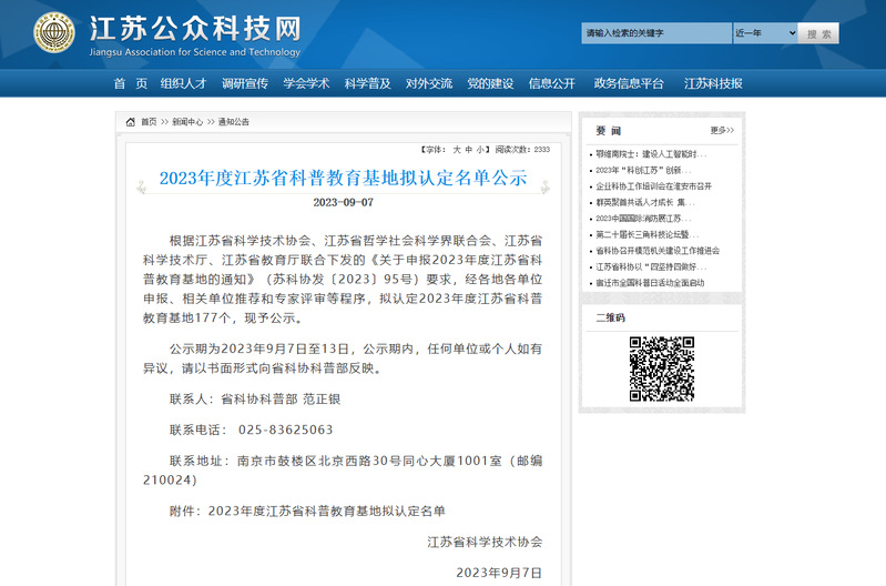 近日,在由江苏省科学技术协会、江苏省哲学社会科学界联合会、江苏省科学技术厅、江苏省教育厅联合组织开展评审的2023年度江苏省科普教育基地的评选中,电信院“北斗启航”科普教育基地成功获批2023年度江苏省科普教育基地。