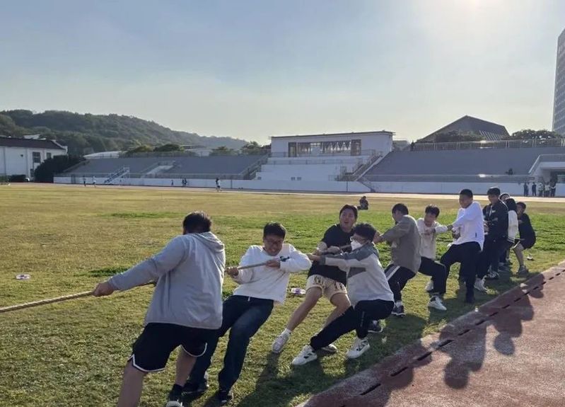 在“拔河大比拼”环节,同学们精神抖擞、全力以赴,为班级荣誉拼尽全力,场上氛围紧张而激烈,呐喊助威声不绝于耳。