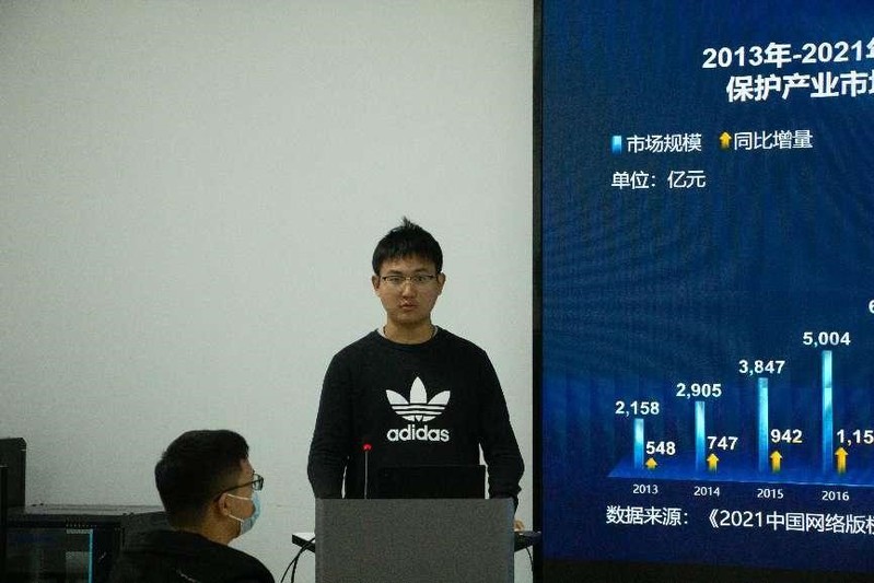 南信大“互联网+”国家金奖项目团队成员王子宸同学和穆文鹏同学作了项目路演和经验分享,并与师生进行了现场互动。