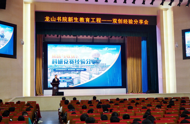 为增进新生对创新创业竞赛的理解,鼓励新生积极参与科创活动,龙山书院面向2023级新生于10月29日在风云剧场举行双创经验分享会。本次活动由龙山书院辅导员刘金星主持,同时邀请到大气物理学院沈苏楠、薛捷升和环境科学与工程学院倪心湜三位同学作分享。