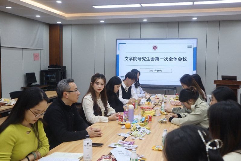 为深入贯彻落实党的二十大精神,进一步加强学生组织和学生干部队伍建设,促进文学院研究生会各部门之间交流合作,发挥院研会“自我服务、自我管理、自我教育、自我监督”的作用,10月26日晚,文学院研究生会在文德楼N402会议室召开第七届研究生会第一次全体会议。文学院党委副书记兼副院长吴鹏飞、研究生辅导员邵芳及研究生会全体成员参会,本次会议由文学院研究生会主席朱妍主持。