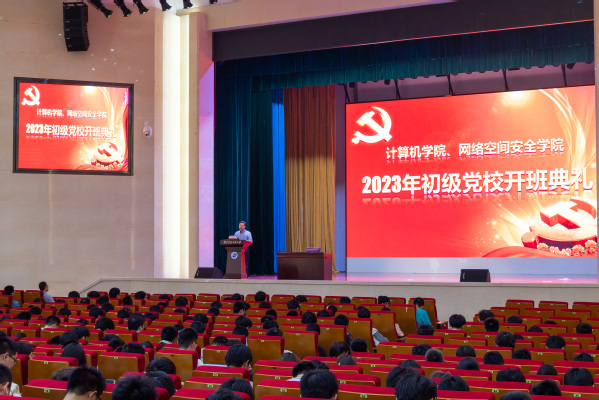 为做好新生入党启蒙教育,进一步加强对学生的思想引领,计算机学院、网络空间安全学院于10月27日晚在风云剧场举办了2023级新生初级党课开班仪式,学院党委副书记、副院长朱文镇致辞并讲课。