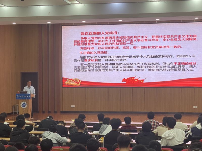 随后,黄锐开始了党课培训第一讲。他指出,只有树立正确的入党动机才能产生正确的入党行动,只有端正入党动机才能经受住党组织的考验;他强调,树立正确的入党动机,必须要加强学习马克思主义理论、党的方针政策、党的章程、四史等理论知识,掌握历史方法论,用于指导实践和提高综合素质。党员是一个标杆,也是一个标准,更是一个高度,他列举了焦裕禄、赵亚夫等优秀共产党员的先进事迹,呼吁同学们对标榜样,努力学习专业知识,夯实专业技能,将来为党和人民而奋斗。最后,黄锐号召同学们要不断增强党性观念,用先进的理论武装头脑,开拓创新,增强服务意识和奉献精神,以实际行动争取早日入党。
