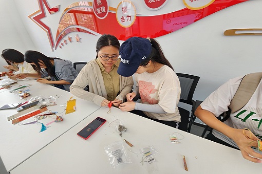 接着,在老师们的指导下,同学们纷纷拿起针线,认真制作香包。一针一线之间,同学们相互学习和帮助,增进了彼此之间的友谊和合作。现场氛围温馨而融洽,欢声笑语此起彼伏。通过制作香包这一传统手工艺品,同学们不仅传承和弘扬了端午节的传统文化,还培养了动手能力和团队协作精神。同时,融入党建元素的活动形式也增强了他们的爱国情怀和社会责任感。