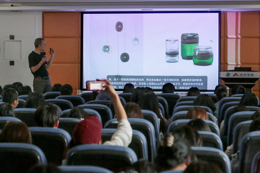 首先,讲者分享了自己的设计旅程,以及这一过程中所遇到的挑战和收获,他主张“Less is more(简即是多)”的创意设计理念,并叙述了通过个人经历和理念塑造的设计风格和方向。接着,讲座探讨了如何在设计过程中平衡创意与实用性,实现设计的最终价值。通过案例分析和实践经验分享,讲者与师生们一起探索了设计背后的思考和决策过程。最后,讲者讨论了创新思维,重点是探索想法、创造可能性和寻找许多正确方案,而不是单一方案,强调了“设计是为人,为社会,为大自然”的设计理念,通过案例向听众展示了设计如何影响人们的生活、改善社会环境,并促进与自然的和谐共生,启发了同学们对设计本义的思考。
