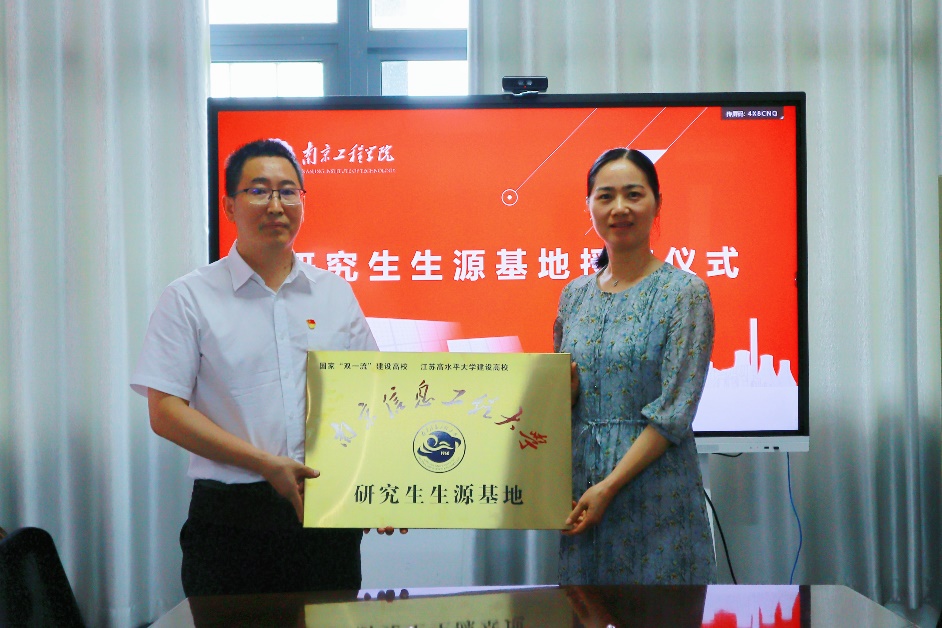 在南京工程学院,屈家安书记和蔡炜老师首先与各学院负责人进行了会面,探讨了未来的合作方向和交流机制。随后,南京工程学院与南京信息工程大学举行了生源基地授牌仪式,标志着两校在人才培养和输送方面的合作进入了一个新的阶段。