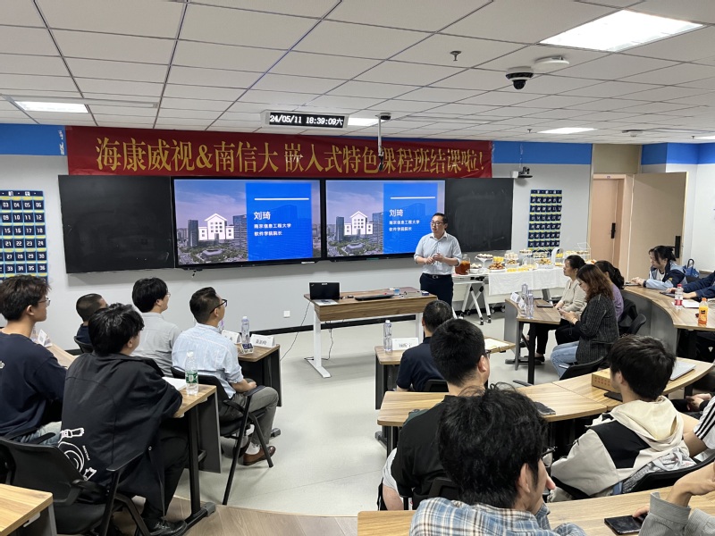 近日,海康威视嵌入式特色课程班结业仪式在临江楼B507顺利举行。海康威视嵌入式软件首席专家、后端产品业务部开发部总经理顾昕宇、江苏业务中心文教卫行业总监黄新峰、海康威视嵌入式专家杭振、陈鑫、钱寒阳、高级招聘经理郭星甫,以及软件学院院长刘琦、副院长崔萌萌、副书记水泱、网络工程系系主任廖灵芝和嵌入式课程班全体学员出席,仪式由郭星甫主持。