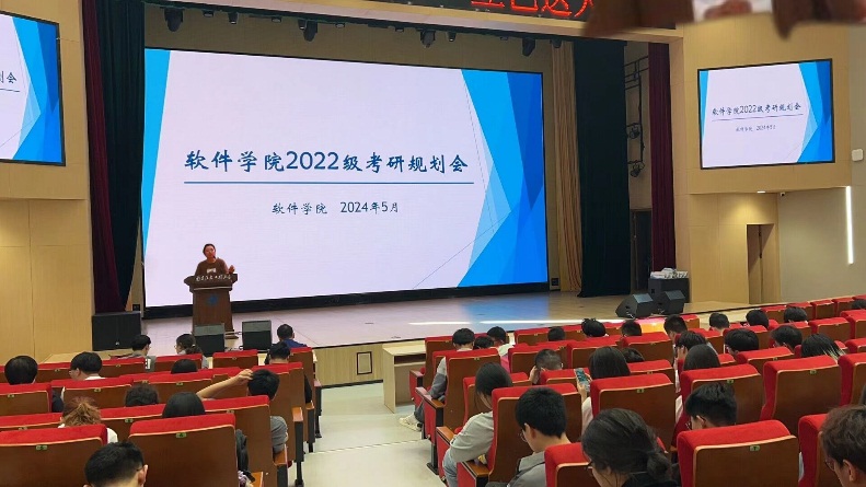 为激发2022级同学学习热情,帮助全体同学明确努力的方向和目标,珍惜时间、努力学习,不断夯实专业知识、提升实践能力,软件学院于5月13日召开2022级年级会暨考研规划会,帮助大家更好地了解考研形势,引导大家了解研究生入学考试的基本步骤、时间安排、准备流程等,进一步做好生涯规划。软件学院2022级全体同学参会。