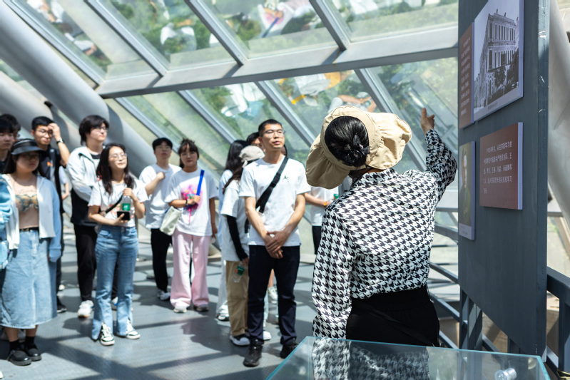 党日活动第二项是前往江苏省农业科学院交流学习。江苏省农业科学院是直属江苏省人民政府领导,是江苏省唯一的、综合性的农业科研机构。通过参观学习江苏省农业科学院,同学们对现代农业科学的研究成果和应用有了进一步认识,这也激发了大家对农业遥感的兴趣和探索。省农科院农业信息研究所综合管理事务部的贵淑婷副主任与智慧农业创新团队遥感智能协作组王晶晶副研究员为同学们讲解了农科院的历史沿革与当前农科院的工作研究近况,不断深化同学们对于现代农业科学的理论体系,同时,她们表示非常欢迎我院学生前来实习、联培等交流学习,加强双方的进一步合作。