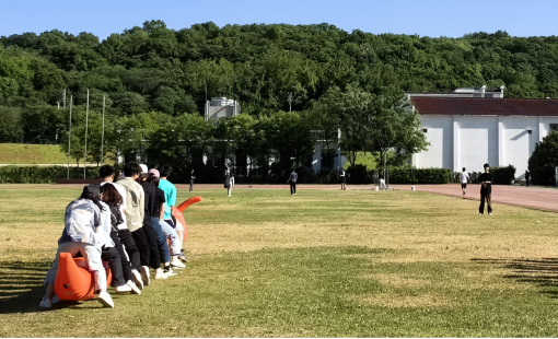 活动开始前,进行了短暂的“破冰”后,结对双方便开始相互邀请、自由组队,第一环节是“与时俱进”,四个队伍两两PK,手握气球“毛毛虫”把手,齐心协力冲向终点。第二个环节“履带战车”,队伍成员站在“传输带”中,在看不见方向的空间里,每个人高举双手,快速向前传送履带,传输过程中,有队员被“挤”出队伍,有的队伍跑偏方向,现场气氛开心热烈。第三个环节是“不倒森林”,自由参加,10人一组,顺时针旋转,旋转过程中,后方同学需抓住前方同学的握杆,确保不会掉落至地上,不断PK,直至决出最后赢家。三个环节结束后,同学们迎来了十分期待的“套圈”项目,个个热情高涨,摩拳擦掌,每当套中时,人群中便会发出一阵欢呼。夕阳西下,青春的面庞上都洋溢着笑容。