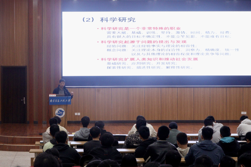 葛俊祥以“你为什么要选择攻读研究生”“你所理解的研究生教育是什么”“你希望在研究生阶段获得什么”等3个关键问题作为开篇,引导同学们深入思考个人的研究生生涯。报告中,他详细阐述了中国研究生教育的发展历程;指出一名合格研究生的基本要求,要善于从书籍、文献和实践中发现问题,要求实专研、贯穿联想、有钉钉子精神,要探究科学技术、寻求发现和发明,要具有读思问说写的能力,要具有理论与工程实践相结合能力。他分享了如何进行科学研究和论文撰写的经验,认为科学研究需要天赋、基础、训练、坚持、激情、时间、精力、经费等多方面的支持。对于研究和研发,葛俊祥提出了加强基础学习、注重实践、广泛阅读文献资料、勤加思考的建议,并强调了在科研中应该具备的耐心和对不确定性的认识。最后,葛教授以“关于导师”“关于研究课题”“关于论文”等六个“关于”向学生们传达了研究生应该了解的基本事项,为他们更好地进入科研状态提供了指导。