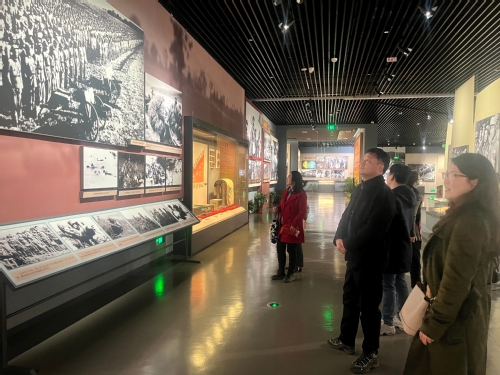 一行人首先来到了渡江胜利纪念馆。渡江胜利纪念馆为纪念南京渡江战役胜利而建造,由主馆区、渡江胜利广场、渡江胜利纪念碑、挹江门城楼等部分组成。主展厅内共展示各类文物和复制品400余件,珍贵历史照片500余幅。展览共分为序厅、“风雨苍黄”“天翻地覆”“人间正道”“胜利之都”和纪念厅六个部分。在主场馆,大家依次参观了“运筹帷幄”,“坚决打过长江去”“决战千里,百万雄师过大江”“军民团结,接管城市开新局”“革命到底,宜将剩勇追穷寇”“见证胜利,革命精神世代传”五个部分,支部党员学习了渡江战役的历史,缅怀了革命先烈的丰功伟绩,深刻体会到了革命先烈英勇无畏的精神和和平生活的来之不易。走进纪念馆,一座座雕塑和一幅幅油画,各种历史文物和文献,结合多媒体影像资料等媒介形式,一张张图片、一道道展板、一件件文物、一段段影像全景式地描绘了400万军民奋勇向前的壮阔场景。全体成员深刻感受到了毛主席诗词中“钟山风雨起苍黄,百万雄师过大江。虎踞龙盘今胜昔,天翻地覆慨而慷。”的壮阔气势。