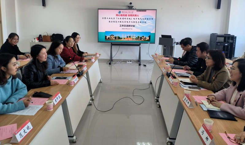 12月7日下午,齐鲁工业大学(山东省科学院)电子电气与控制学部党委副书记赵菁、张伟忠一行莅临我院进行交流研讨。电信院党委书记张明菊、党委副书记兼副院长叶玉娣一行出席,会议由叶玉娣主持。
