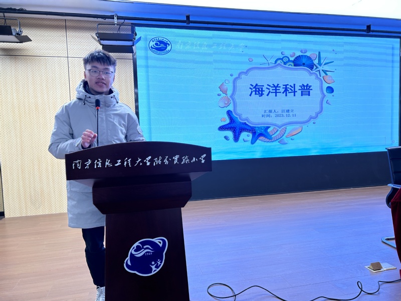 12月10日,海洋科学学院关工委携手葛塘派出所关工委,组织海洋科学学院学生走进南京信息工程大学附属实验小学,开展了一场海洋科普宣传活动,为两百多位三年级小学生带来了一场生动有趣的海洋探索之旅。