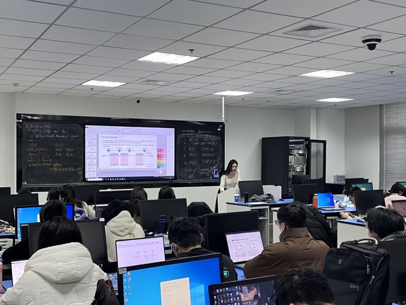 为进一步连接产业前沿技术及应用,探索产学合作、产教融合新举措,发挥高校和企业的各自优势,夯实华为班“面向前沿·理实交叉·深度融合”的新工科拔尖人才培养模式,提升华为班学生专业实践能力与科学素养,近日,电信院引入华为DemoCloud实训系统,华为HCIE认证架构师刘晓霞、华为高级工程师吴晗亲临华为班,进行《下一代互联网技术》专业实验课授课。