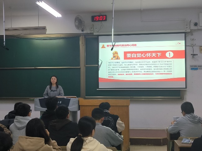 为深入学习贯彻习近平总书记在同团中央新一届领导班子成员集体谈话时的重要讲话精神,全面落实团十九大部署,引领团员青年在学思践悟中坚定理想信念,11月9日,海洋科学学院在文德楼N614开展“青春心向党 奋进新征程”主题宣讲活动。本次宣讲由海洋科学学院学办副主任曹芸主讲,全体2023级学生参加。