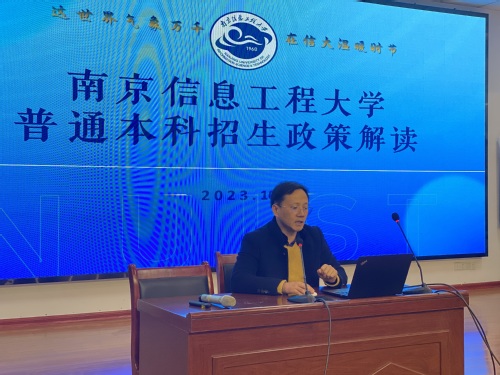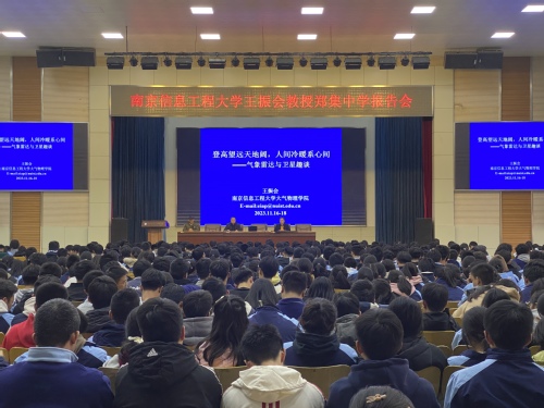 讲座开始前,陈建坤代表南信大向中学呈送“喜报”,展示各校学子考入南京信息工程大学后,在大学生涯中所获得的各类高水平奖项荣誉以及本科毕业后的去向等,鼓励高中学子以学长为榜样奋力拼搏、力争上游。