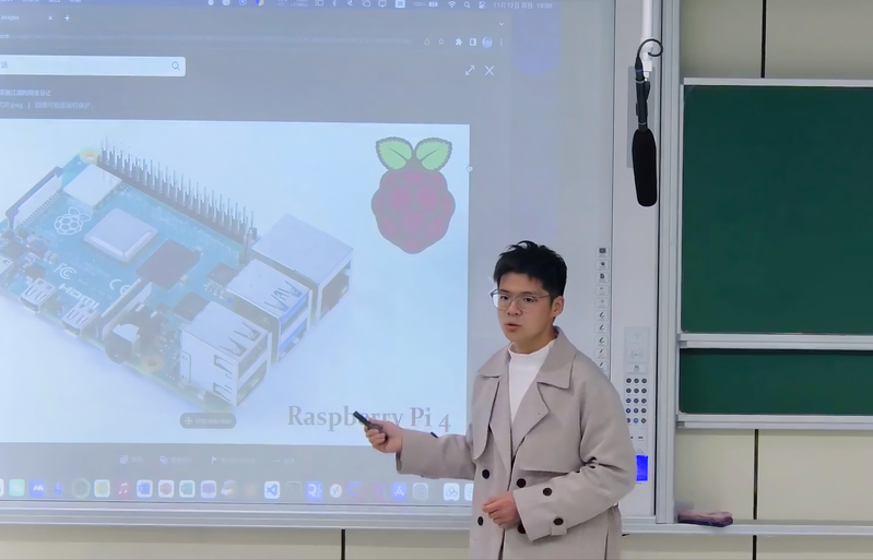 活动分为现场演示教学和联机体验两个部分。现场演示教学部分由社长、22级人智合作1班赵培喆同学为社员介绍了树莓派的基本信息,他从自己的实际经历出发向大家展示了树莓派在电子控制领域的实际应用。随后,赵培喆讲起树莓派工程实训社团成立的初衷是以树莓派作为一个契机,凝聚一批未来优秀的电子工程师和软件网络工程师,提升社员们的实际应用能力。希望能够在未来产生许多以树莓派作为应用平台搭载的创新项目,并以这些创新项目参加“互联网+”“挑战杯”等大型创新创业比赛。