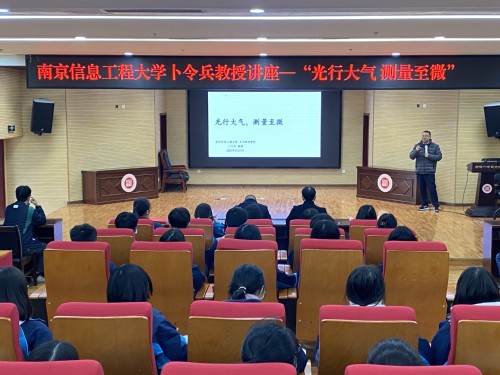 在新都一中开展的“教授科普进中学”讲座中,卜令兵教授作题为“光行大气,测量至微”的现场科普。他从自身的科研经历和团队的研究内容入手,对气象卫星和气象雷达的工作原理、探测方式、数据处理、公共应用等进行了细致易懂的介绍。接着,他对于四川当地常见的天气现象成因及其影响进行了剖析,并将其与高中物理课本中的知识点进行了巧妙结合,生动形象地阐述了气象探测仪器在这些天气现象观测和预报中的重要作用。讲座最后,卜令兵鼓励大家都要好好学习,激励同学们要做一名上进、踏实、努力、有信仰、有抱负的新时代青年。