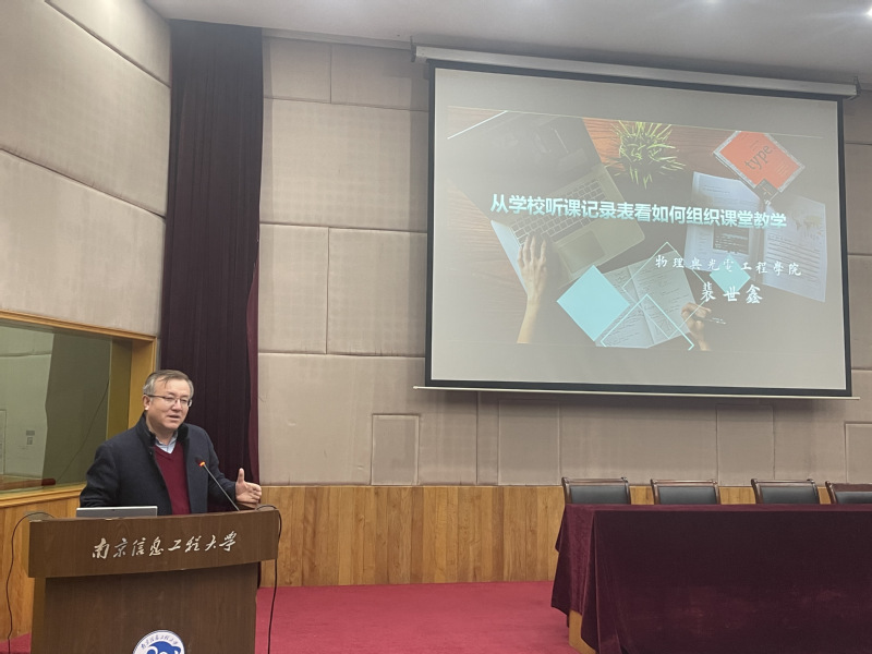 12月12日下午在长望楼N102报告厅组织开展“从听课记录表看如何组织课堂教学”专题讲座。本次讲座特邀省教学名师、校督导组长裴世鑫教授主讲,学院全体领导班子、全院教职工参加讲座,讲座由副院长刘光杰主持。