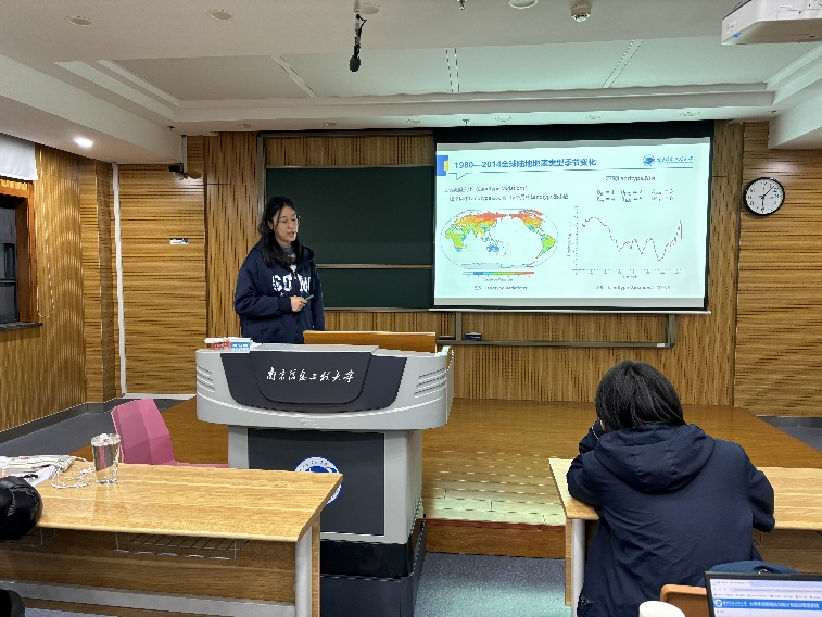 本次报告会中,21级吴雨涵、徐铭遥同学依次汇报了自己的近期成果。吴雨涵同学以“全球地表土壤湿度-蒸散发耦合状态的季节性变化探究”为题,通过对土壤湿度-蒸散发(SM-ET)耦合性质的分析,探究了该耦合的时空特征、与气温和降水的关系,以及在不同二氧化碳排放情景下,全球SM-ET耦合的变化情况。徐铭遥同学以“ENSO对东亚-西北太平洋区域北半球夏季季节内振荡的影响”为题,在得知向北传播的ISO与前一冬季ENSO存在相关关系的背景下,分别探究了年际变率的主导模态、ENSO对EAWNP-ISO的影响机制。