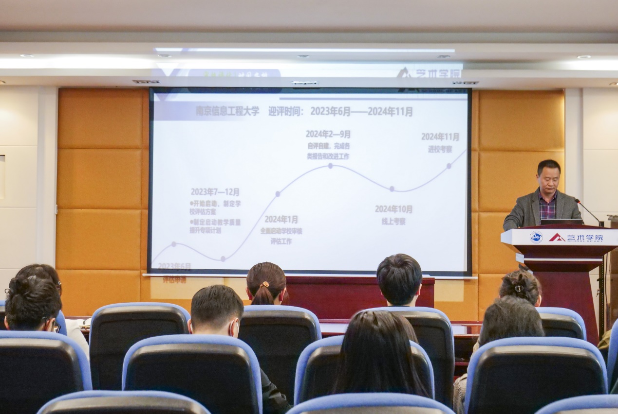 他强调,全院师生要高度重视审核评估工作,要以高度的主人翁意识和责任意识,对审核评估相关要求准确把握,老师们要热爱教学、倾心教学、研究教学,潜心教书育人,在专业教学中融入课堂思政元素,积极推动教学创新。