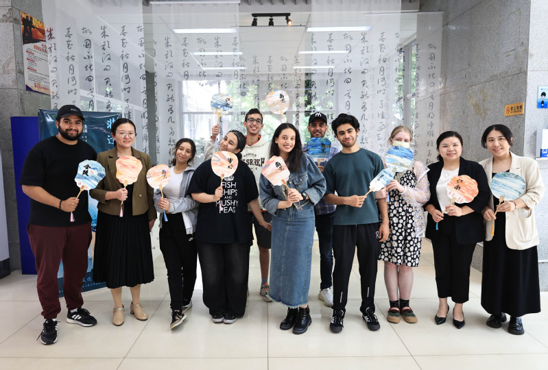 在了解方法后,老师与学生纷纷加入制作,做出了属于自己的独特漆扇。漆滴入水,一场色彩的盛宴在水面上展开,每一滴漆都是一次灵感的闪光,每一把扇子都是一件独一无二的艺术品。我校留学生也积极参与其中,他们发挥着丰富的想象力,选取喜欢的色调,转动着扇子入水,一幅色彩绚丽的漆扇就诞生了。留学生们纷纷表示,非常开心和感谢受邀参加此次活动,他们体验到了中国传统文化的丰富多彩,也被中国传统文化的独特魅力所深深吸引。