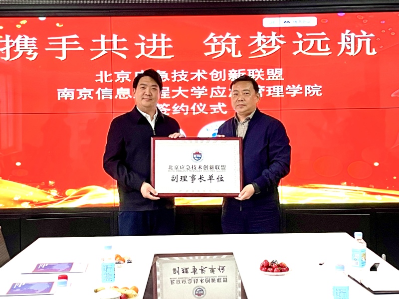 联盟会谈结束后,吴志强和孟现勇分别代表北京应急技术创新联盟及南京信息工程大学应急管理学院签署了“南京信息工程大学应急管理学院优质就业基地”及“南京信息工程大学应急管理学院优质实习实践基地” 共建协议,吴志强为南京信息工程大学应急管理学院颁发了副理事长单位牌匾。同时,还为孟现勇颁发了副理事长证书。我院教师李祥超及张胜玉获聘联盟第二届理事会专家智库委员会委员。