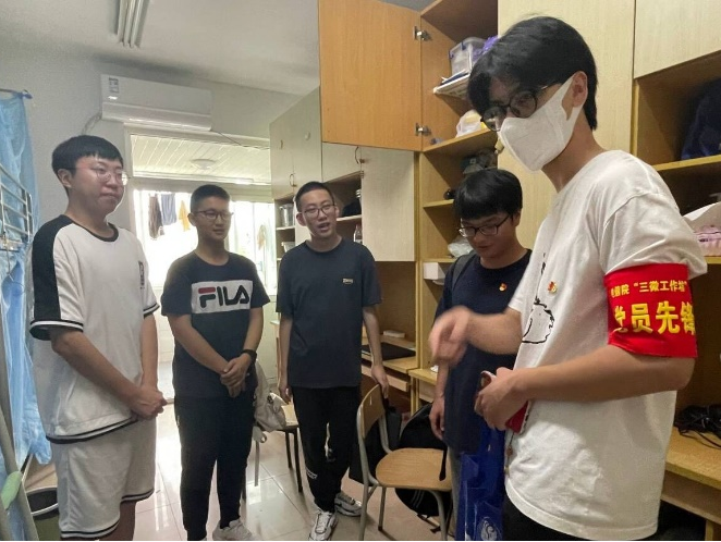 电信院学生会、各学生党支部组织学生宿舍安全大检查,旨在构建良好的宿舍行为规范,切实为同学们营造文明、安全、奋进的学习生活环境。查寝开始后,同学们来到查寝宿舍,重点排查学生宿舍吸烟、违规电器、违禁物品等情况,认真观察记录下每个宿舍存在的安全隐患、环境卫生等问题。在检查过程中,党员先锋同学给同学们认真宣传宿舍用电安全,强调集体宿舍防火防电注意事项,提醒同学们注意日常防火、防盗,做好宿舍卫生和个人卫生。