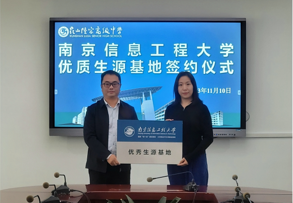 秦书乐先后与昆山陆家高级中学校长陈燕飞、太仓高级中学校长陈国良及两所中学的高三年级班主任进行了座谈,详细介绍了我校的办学历程、专业特色、学生培养以及2023年招录情况,感谢两所中学对我校招宣工作的大力支持,并向两所中学的师生发出邀请,欢迎大家走进南信大,近距离了解南信大。此外,在昆山陆家高级中学还举办了优质生源基地授牌仪式。