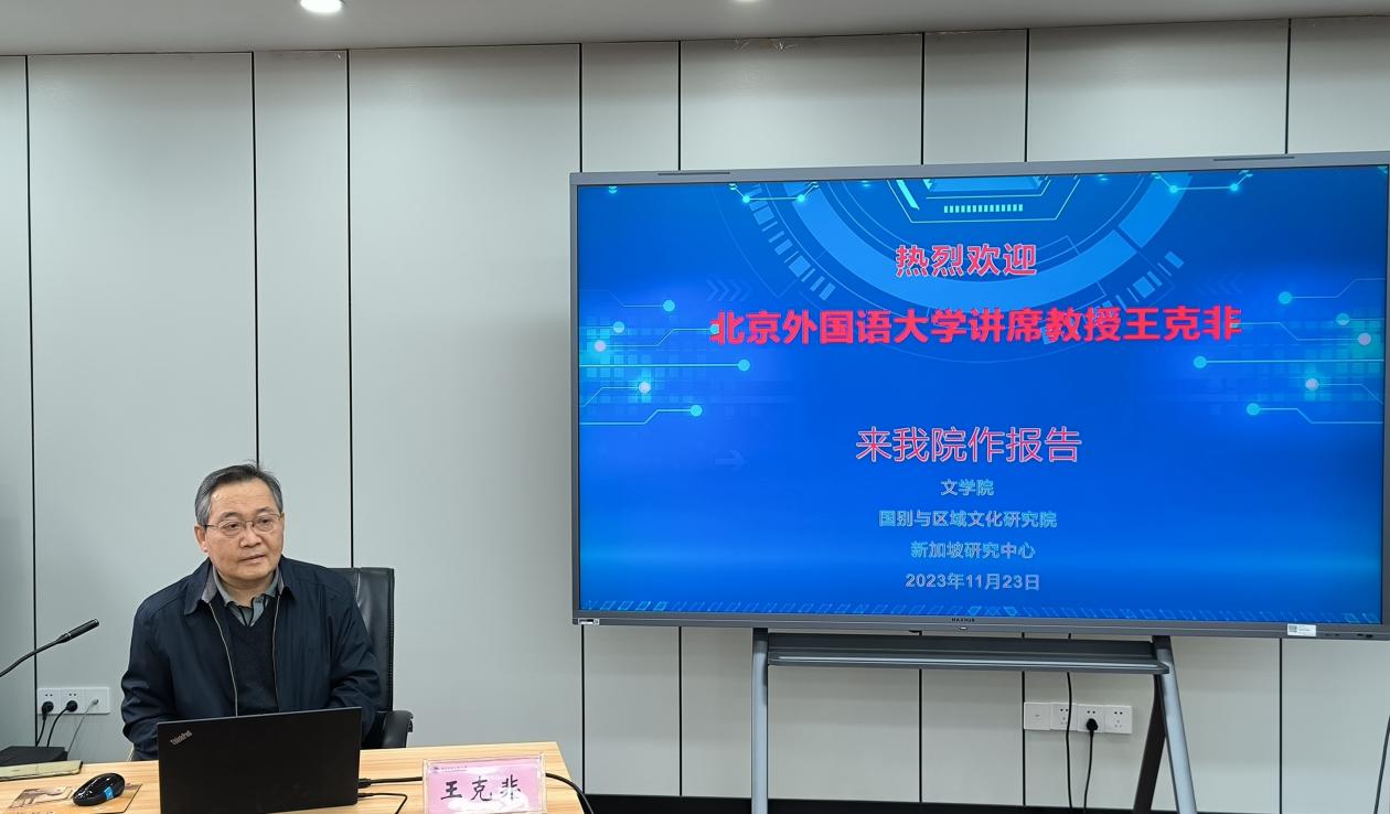 11月23日下午,文学院主办的明德·语言文化跨学科高层论坛系列讲座在文德楼N402如期举行。本次活动,特邀北京外国语大学讲席教授王克非作题为“翻译即文化比较”的学术报告。讲座由文学院院长赵霞教授主持,文学院党委副书记(主持工作)郭雨、副院长杜玉生、学院部分教师、研究生及本科生参加本次讲座。