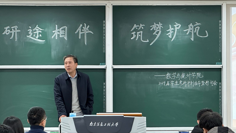 星光不问赶路人,岁月不负有心人。为缓解考研压力、增强必胜信心,11月23日下午,数统院在明德楼N515开展2024届学生考研冲刺指导暨慰问活动。院党委副书记、副院长徐锋华,毕业班各班班主任、学办全体辅导员,及2024届考研学生参加了活动。活动由毕业班辅导员靳蕊卉主持。
