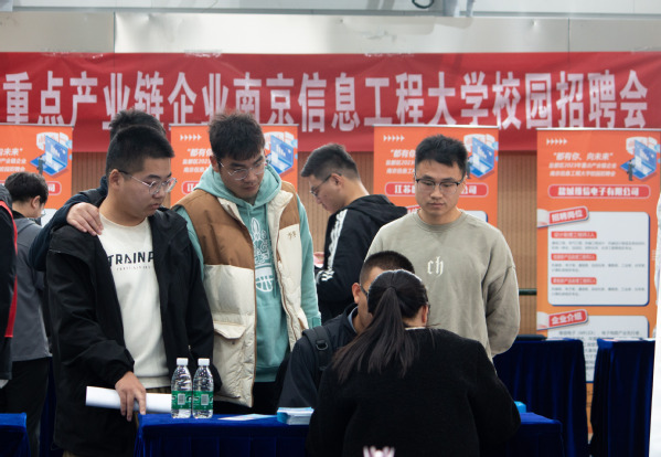 招聘会现场,各企业展位前人头攒动,毕业生们满怀期待地将精心准备的简历投递给心仪的企业,有的专业契合度比较高的企业甚至在招聘会刚开场就排起了长队。某企业的招聘负责人表示:“在今年的秋招中,我们会更看重毕业生的个人综合能力,希望同学们好好把握这次专场招聘会的机会。我们热忱欢迎南京信息工程大学的学子来到我们公司发光发热!”