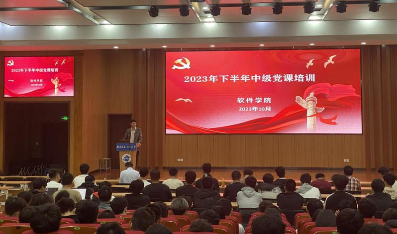 为进一步引导我院入党积极分子端正入党动机、学习和了解中国共产党的优良作风和光荣传统,明确中国共产党发展党员工作细则,着力提升其政治理论水平和党性修养,近期,我院开展了2023年下半年中级党课培训,中级党课培训开班仪式由我院党委副书记(主持工作)巨传友主持,我院关工委常务副主任黄锐、计算机学院党委副书记朱文镇、校组织部副部长刘雨华受邀讲授专题党课,学院入党积极分子参加培训。