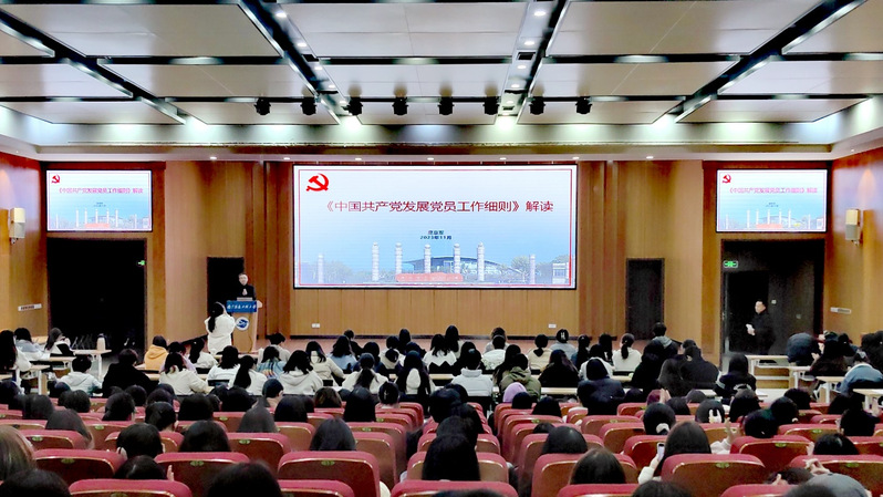 庞章军以“中国共产党发展党员工作细则”解读为主题。从“修订《细则》的背景和重要意义”“《细则》修订的主要内容和特点”和“《细则》关于发展党员工作的程序解读”三个方面进行讲授,具体介绍了中国共产党发展新党员的工作流程,并对入党相关政策进行了深刻解析,详细讲解了入党申请书和思想汇报的书写要求。最后,庞章军强调了端正入党动机的重要性和入党过程中需要注意的问题。