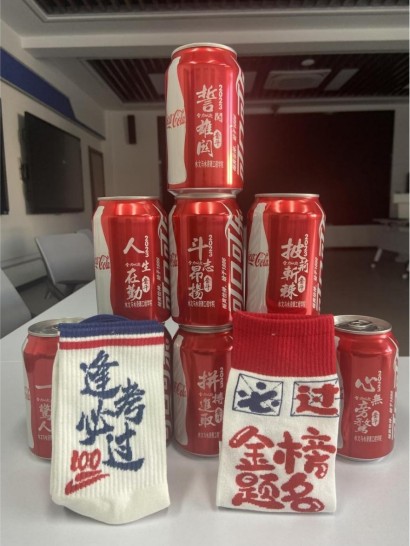 “考研暖心包”里的每一件物品都具有独特的含义,包括一套印有“金榜题名”的文具,一罐杯身印有加油提气话语的订制可乐和两双绣着“逢考必过”“旗开得胜”的袜子。这一份份“考研暖心包”在临近考研之际,为“研”途学子送上最真挚的祝福——今年一“研”为定,明年定为“研”一。