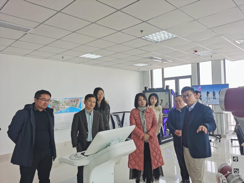 会前,谢治菊副处长一行参观了南京信息工程大学气象观测基地、见山园艺术馆等,并参观了人工智能产业学院联合创新实验室。徐军副院长向来访人员介绍了我院智慧气象、智慧医疗、元宇宙等三个团队的部分产教融合创新成果。