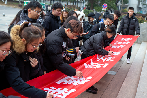 仪式结束后,学院还进行了“学宪法 强学风 建新功”签名活动,并集中查看了阅江楼、滨江楼的上课情况。
