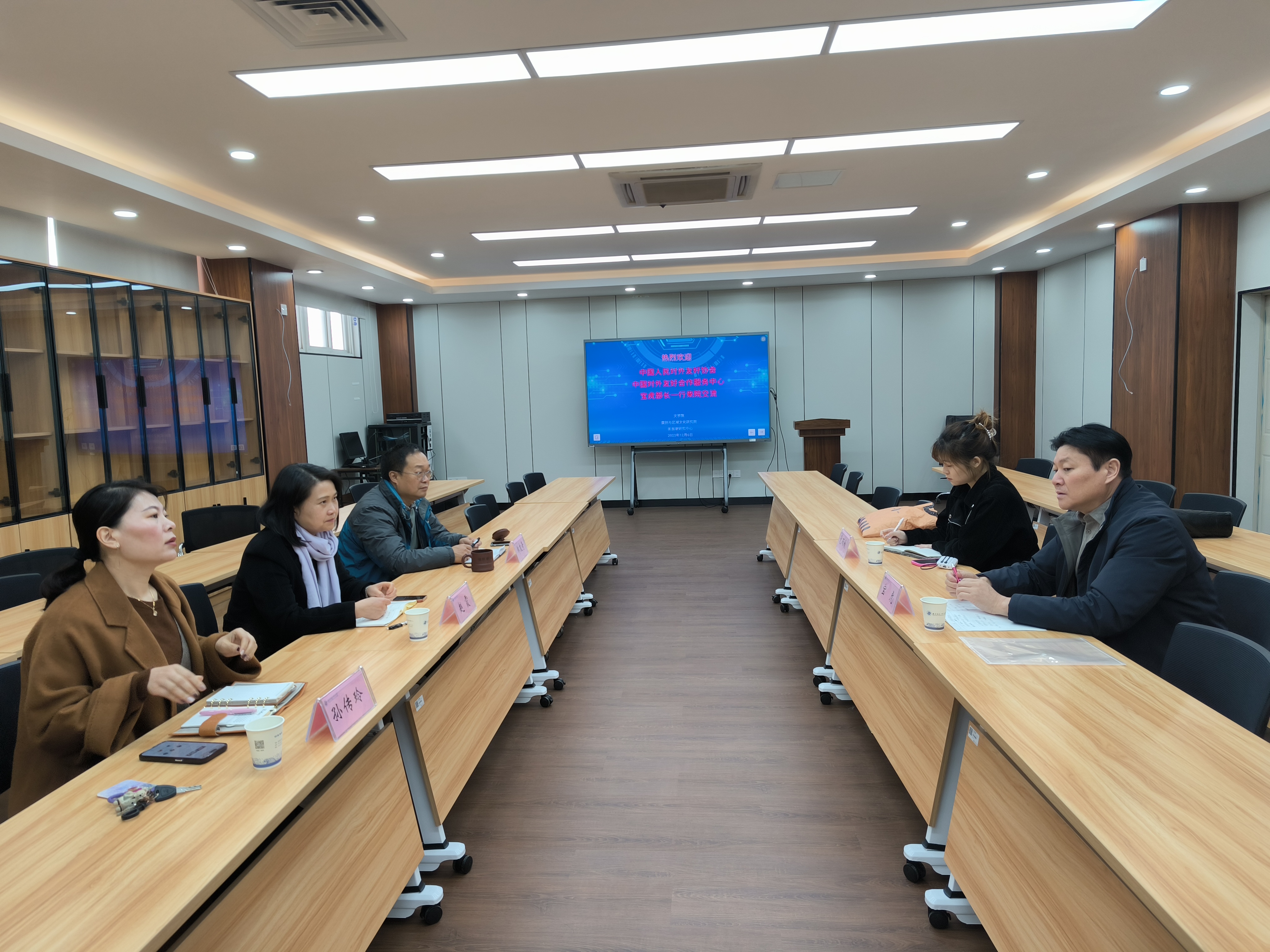 2023年12月6日,中国对外友好合作服务中心国际交流部宝虎部长一行到访文学院,洽谈校企合作。文学院院长赵霞、副院长郑友奇、日语系等相关老师出席。