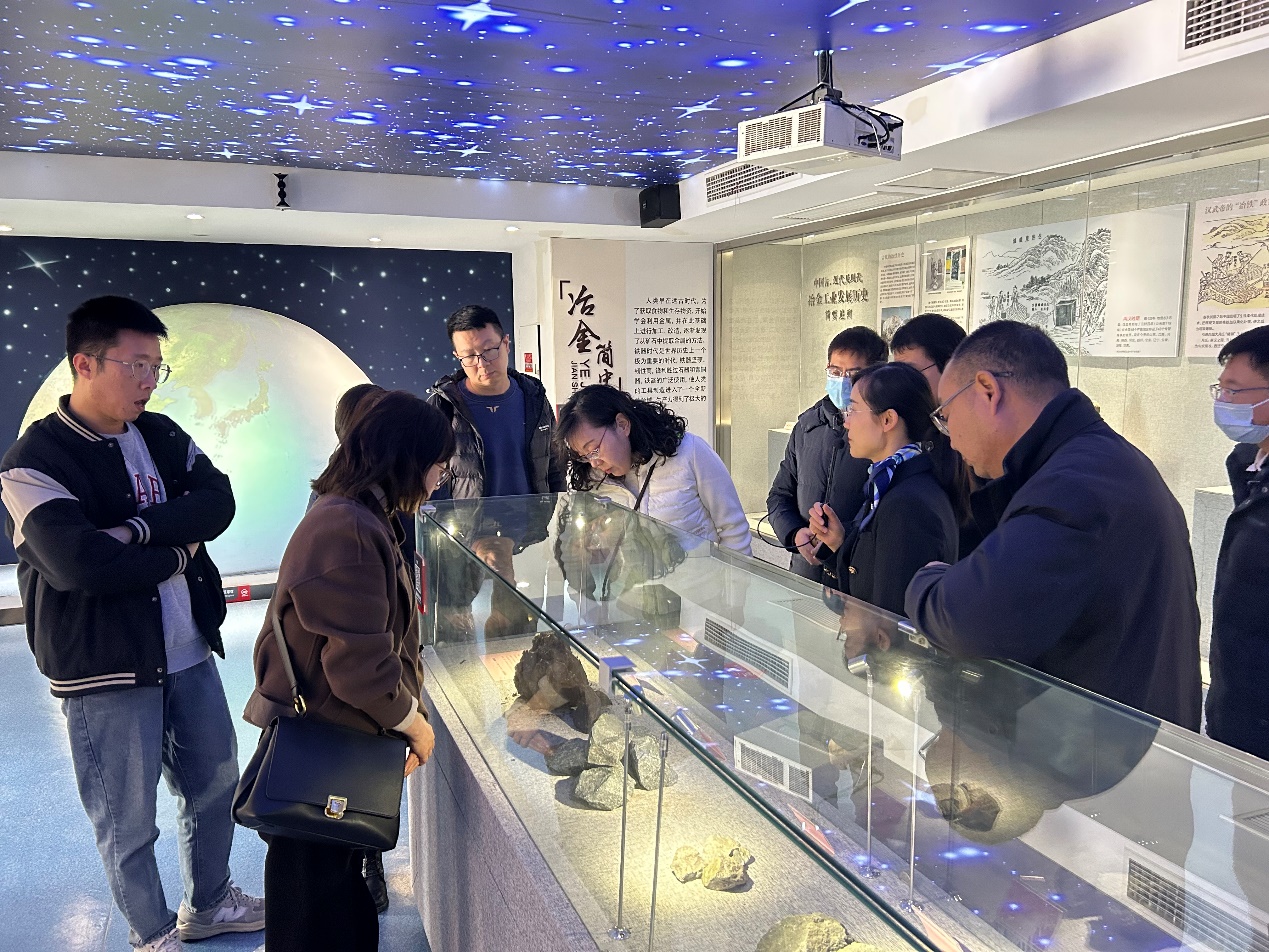 在冶金简史展区,老师们被镇馆之宝——阿根廷陨石吸引,纷纷驻足观赏,很多老师结合自己的科研方向对展柜中的铁矿石结构和冶炼技术与南钢工作人员进行了交流。周凯老师对铁原子的结构模型进行了拍摄,并表示拍摄的照片对其教授的《固体物理》课程很有帮助。接着老师们参观了南钢的建厂历程,在“老五八”墙前大家长时间停留,向1958年建厂的第一代南钢人致敬。“老五八”艰苦奋斗、甘于奉献的精神不仅仅是南钢人的写照,更是激励着一代代中华儿女建设祖国的精神动力。在博物馆的二楼展区,讲解员为老师们生动的讲解了南钢的企业文化成果和南钢的代表性产品,老师就感兴趣的话题进行了提问。