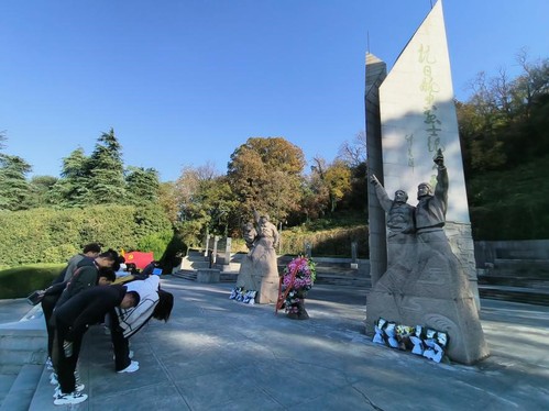 在场馆工作人员的带领下,全体党员同志首先走进抗日航空英烈事迹展馆,依次参观了“奋勇抗敌”“国际援华”“壮志凌云”和“缅怀先烈”四个展区。展区中一幅幅生动的历史图片,一件件饱经沧桑的文物,全面展示了第二次世界大战期间,多国空军联合抗击侵华日军的英勇历史、抗日航空英烈的英勇事迹。同时,党员同志们通过聆听讲解,了解到中国空军的发展历史,了解到中国航空事业从无到有,从弱到强的艰难历程。参观结束后,党支部成员们步行至抗日航空烈士纪念碑前进行献花仪式。所有人面向烈士纪念碑集体肃立,鞠躬默哀,代表敬献花篮并整理挽联。在庄严的气氛中,党员同志们瞻仰烈士纪念碑,沉重追思先烈的丰功伟绩。最后,所有党员面向党旗,庄严宣誓,重温入党誓词。参观纪念馆活动结束后,全体师生一同前往紫金山开展实践活动,师生们相互分享交流活动感受。