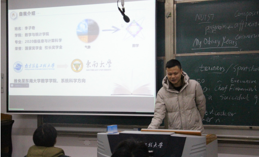 11月19日晚,经验交流会第五期如期举行。首先宣讲的是推免至东北大学的王子龙,他围绕什么是保研、保研流程、如何备考、夏令营与推免四个板块展开。他以自己与室友的实际经历为例,对比了普通推免和竞赛推免的区别,让同学们更加直观地了解二者的异同点。赵重阳则是以自己的校长奖学金答辩视频开启分享,围绕国家奖学金和校长奖学金的申报与答辩过程展开介绍。他指出专业学习的重要性,建议大家养成良好的学习习惯,并分享了自己的学习方法和思路,以及部分学习资源。徐琼莉被成功推免至南京理工大学,她首先展示了自己丰富的高质量获奖经验,如省三好学生、校长奖学金以及多项国家级与省级竞赛获奖,她倡导同学们要“专注如一,勤学奋发”,接着又从高数竞赛、英语竞赛、蓝桥杯、数学建模竞赛等竞赛作了参赛经验分享。接下来,杨超允分享了自己被推免至同济大学、荣获国家奖学金和校长奖学金等荣誉的秘诀:在大学要学会“谋篇布局”。龚文昊和推免天津大学的魏来则又对推免准备、竞赛知识、等问题进行了进一步的补充,最后进行了答疑环节。