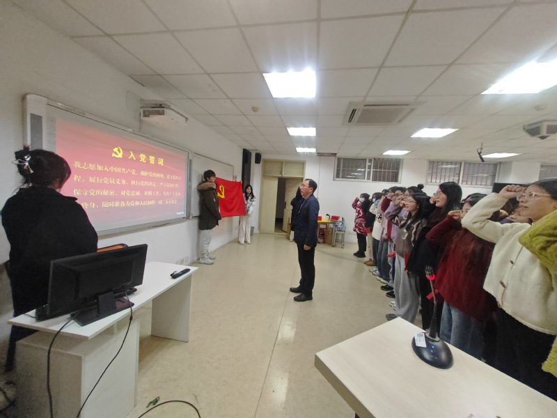活动在全体同志肃立、奏唱《国际歌》中拉开帷幕。随后,吴鹏飞同志宣读了新发展党员喜报,院党委领导、党支部书记们为新党员颁发党章和学习资料。全体党员在郭雨同志的带领下,面向党旗,高举右拳,庄严宣誓。