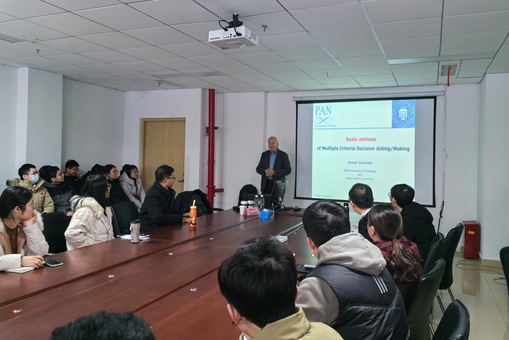 12月16日,Roman Słowiński院士做了主题为“Basic notions of Multiple-Criteria Decision Aiding and ELECTRE III/IV method”的报告。Roman Słowiński院士介绍了多准则决策辅助方法,重点详细讲解了一种基于排序关系偏好模型的 MCDA 方法,ELECTRE III/IV。ELECTRE III/IV方法在备选方案集合中建立偏好关系,得出推荐结果。最后,Roman Słowiński院士用软件演示了ELECTRE III/IV方法的操作过程。同学们认真聆听,并积极与Roman Słowiński院士交流互动。