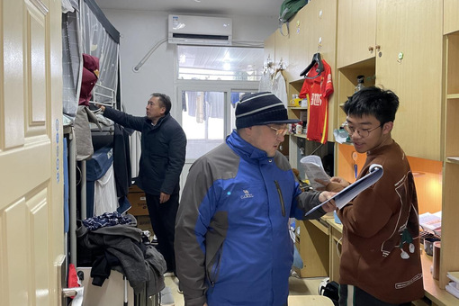 在走访过程中,老师们对学院本科生宿舍进行全面检查,从用电安全到内务整理,逐一提醒并做好情况记录,徐锋华提醒同学们保持宿舍卫生,勤通风、勤洗手,防止冬季传染病的传播。同时叮嘱各位同学在停课复习阶段到图书馆、自习室进行期末复习,养成踏实勤勉的作风,扎扎实实掌握专业知识和技能,刻苦钻研,切莫辜负宝贵时光。