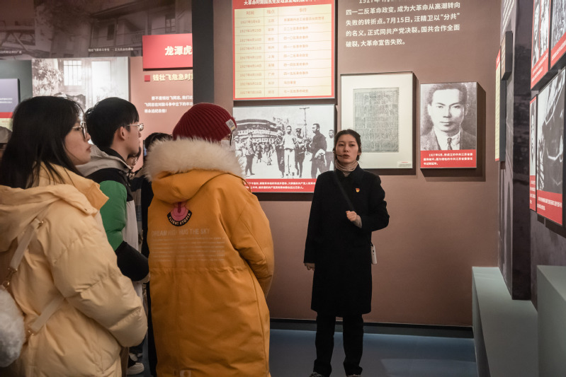 紧接着,参加活动的党员同志踏上“胜利之桥”,进入渡江胜利纪念馆主馆,展馆陈列“天翻地覆慨而慷——渡江战役胜利暨南京解放展”,包含“运筹帷幄——坚决‘打过长江去’”“决战千里——百万雄狮过大江”“军民团结——接管城市开新局”“革命到底——宜将剩勇追穷寇”“见证胜利——渡江精神世代传”等5个部分,展馆通过大型雕塑、大型经典油画、大量珍贵文物与影视资料,借助多媒体手段以及互动展项,再现了渡江战役的全过程,让同学们身临其境,全面了解渡江战役的历史,切身感受渡江战役总前委的指挥智慧、人民解放军的英勇善战和人民群众踊跃支前的感人史实。