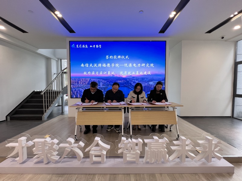随后,开发区科技人才部部长朱玲、南京悦源电力研究院有限公司董事长董桂玲等政、企、校三方代表就深化技术创新合作、搭建协同育人平台、拓展实习就业岗位等方面进一步交流,沃特福德学院将充分发挥专业优势,特别是海外资源,将先进的技术成果和人才资源与园区企业对接,推动园区企业与学院更深层次的合作。之后,沃特福德学院与悦源电力研究院有限公司共同签署了“校外实习实训基地”“优质就业基地建设”协议并授牌。
