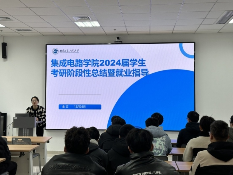 为做好学院毕业生就业指导工作,帮助学生明晰未来职业规划,集成电路学院近期在信息科技大楼A103教室举办2024届毕业生考研阶段性总结暨就业指导会。会议由毕业年级辅导员金红主持,学院辅导员贾琪、2024届全体本科毕业生参加会议。