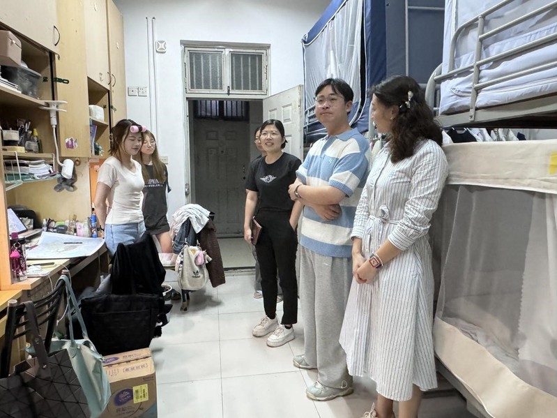 在轻松愉快的氛围中,李艳艳带领辅导员们深入学生宿舍,以近距离、接地气的方式与同学们进行互动。活动现场,老师们细致了解每位同学的暑假生活情况,从旅行体验、社会实践到个人成长,一一倾听并分享见解。同时,老师们还主动引导同学们规划新学期的学习与生活,包括毕业论文、考研就业、课程设置、学术活动、社会实践等各个方面,同时也提醒同学们要合理安排时间,做到学习、生活两不误,鼓励他们设定实际可行的目标,以饱满的精神状态迎接新学期的挑战。